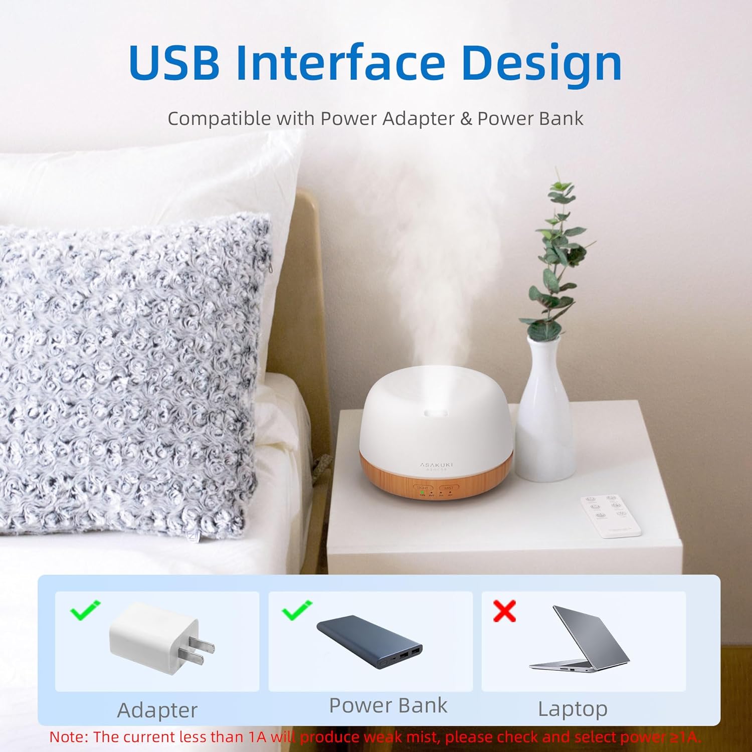 Upgraded DC socket postion from the bottom to the side of the diffuser, easy to connect power.