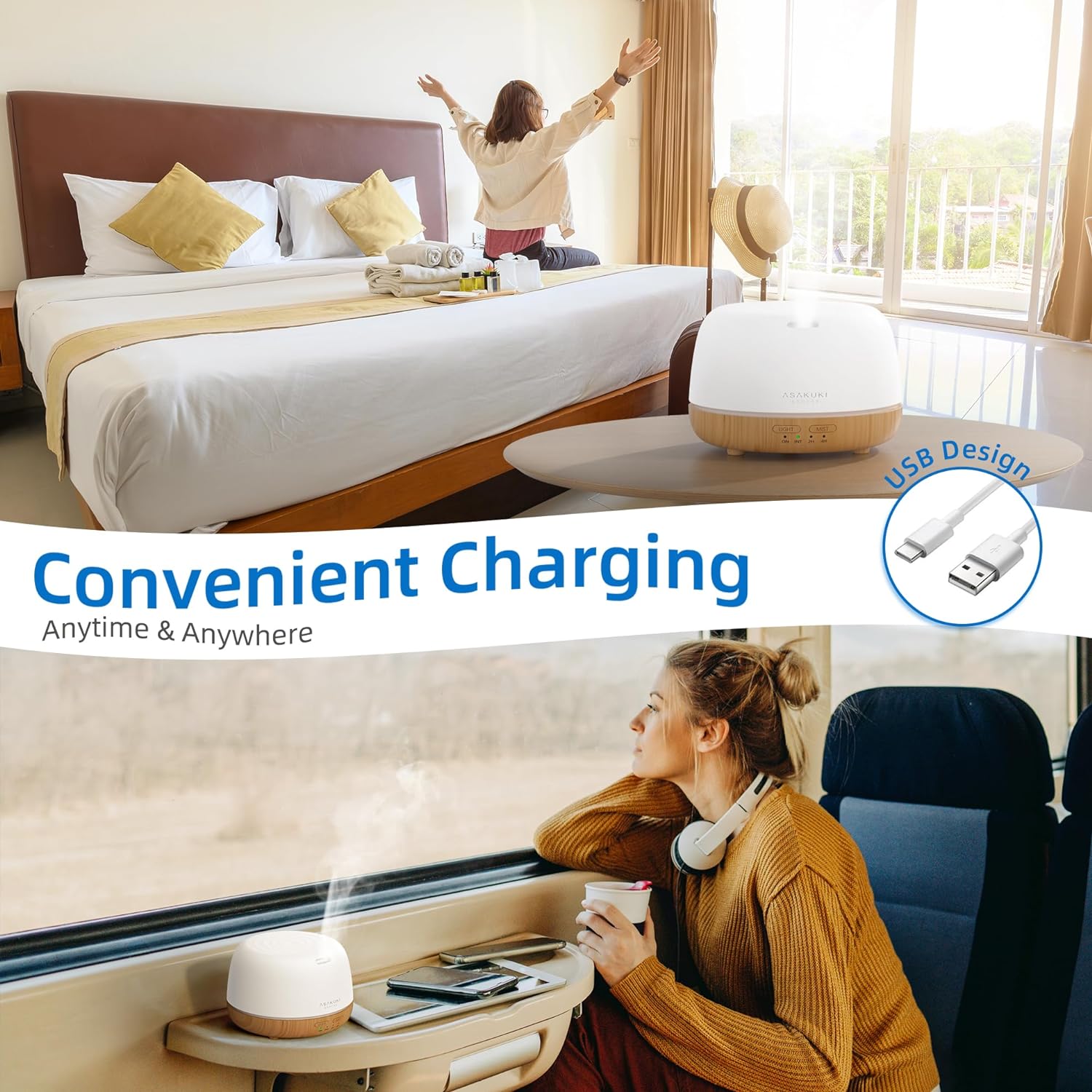 - PERFECT FOR DIFFERENT OCCASIONS: The mist and light functions of this aromatherapy diffuser work separately. You can turn off the light at night while sleeping. Or use this diffuser as a nightlight. It's a wonderful companion for reading, sleeping, working or doing yoga.