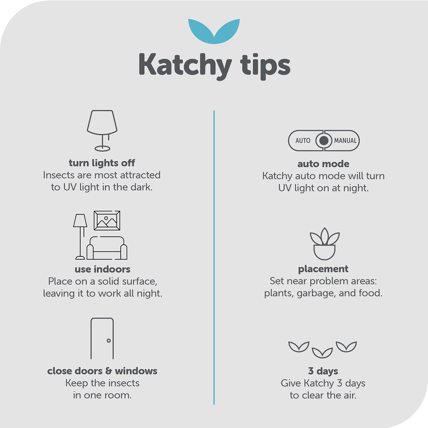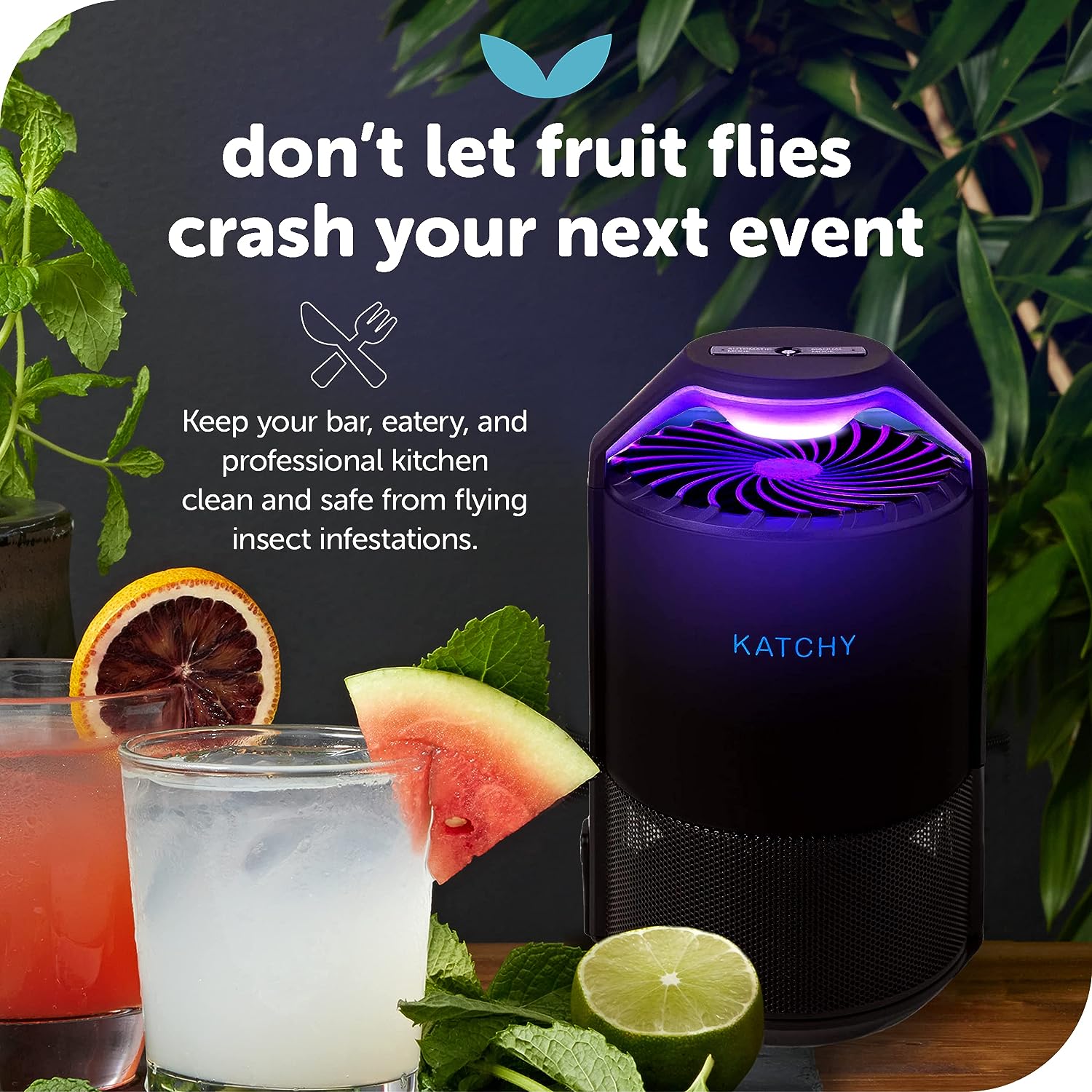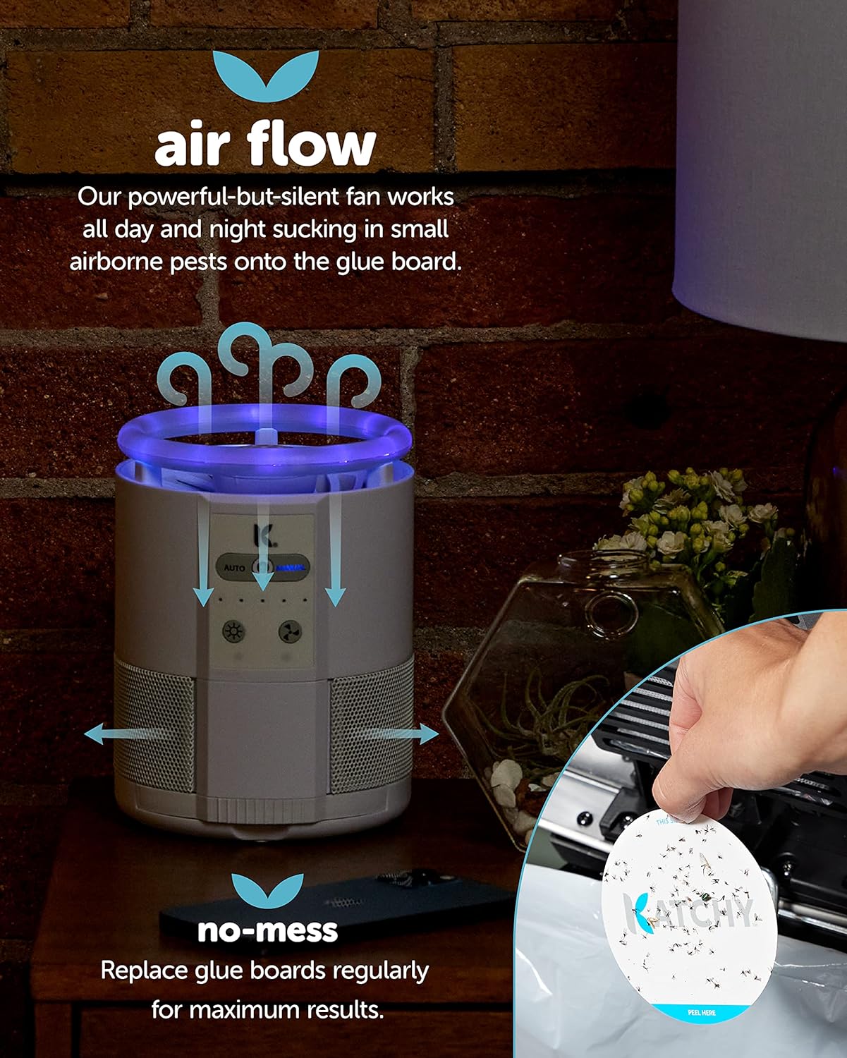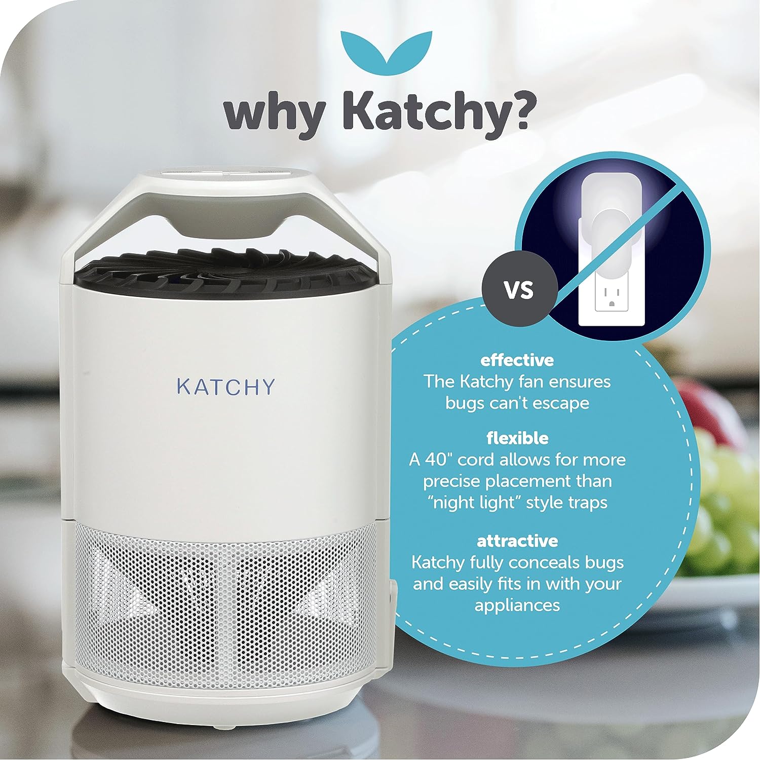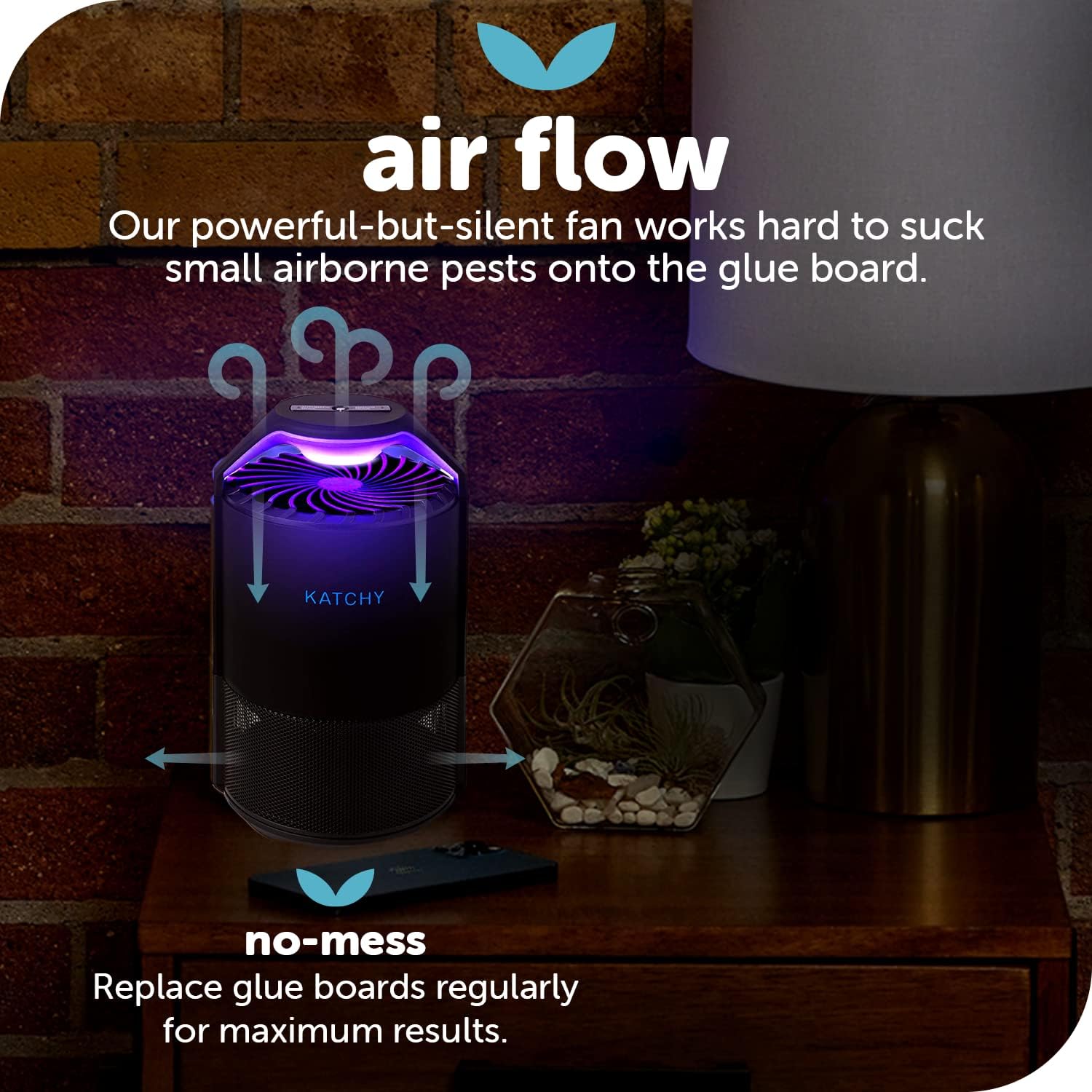 Katchy Indoor Insect Trap - Catcher & Killer for Mosquitos, Gnats, Moths, Fruit Flies - Non-Zapper Traps for Inside Your Home - Catch Insects Indoors with Suction, Bug Light & Sticky Glue (Black)
